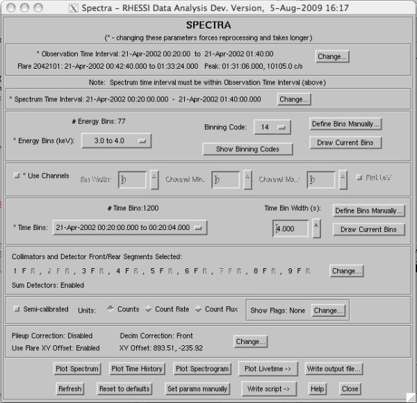 - The RHESSI Command Line Snippets document contains additional information on manipulating the Observing Summary Object and the Spectrum Object from the command line.