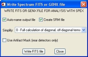 - Note that this creates a full version of the SRM and automatically names and saves the srm .fits file and the spectrum .fits file in your current working directory. There are other keywords that can be used with filewrite as well such as /namedialog to use the widget for naming output files or the files can be named explicitly using srmfile = 'xxx.fits' and specfile = 'xxx.fits'
