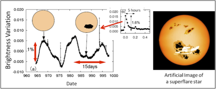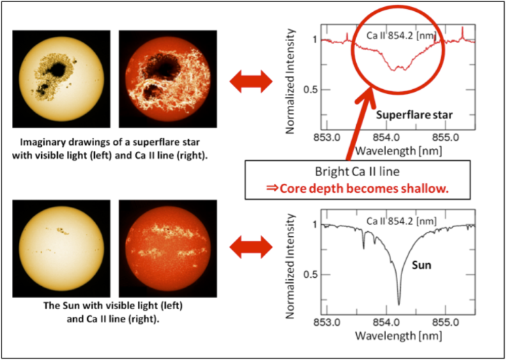 The results of these observations and analysis confirm that stars similar to the Sun can have superflares if they have large starspots. In the future, in addition to the continuing spectroscopic observations with Subaru Telescope, we will conduct observations with the Kyoto University Okayama 3.8 m telescope, which is now under construction. This will allow them to investigate more detailed properties and changes in long-term activity of superflare stars. Can we learn why these particular stars have outsized spots and extreme flare activity?