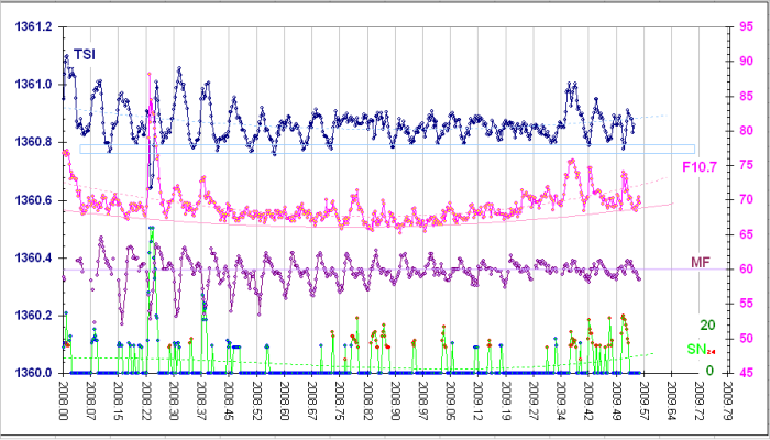 We are pretty sure that something unusual is happening and that the Sun is behaving in a manner that is possibly even unique in the existing record. However the gradual upturn in the F10.7 index, our most reliable and quantitative measure of global solar activity, is clear - from a daily value of about 66 solar radio flux units (10-22 W/m2>Hz) it has risen perceptibly to almost 70. So there seemingly is a new Cycle 24, but where are the flares?