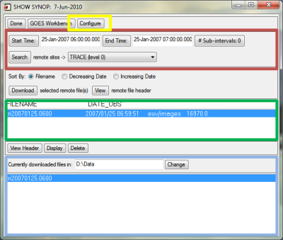 Please note: SHOW_SYNOP and the PrepServer are dependent on data providers for downloading speed. Be aware that downloading data may take a few minutes, during which SHOW_SYNOP or your SSW IDL session may be unresponsive.