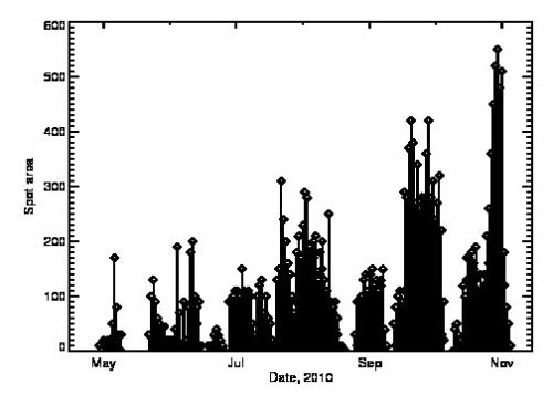The Nuggets have been watching the current solar cycle as it begins (see Nuggets [A], [B], [C], [D], [E]); the amazing thing about these Nuggets is that they began in December 2008, when we already were baffled by the lengthy [sunspot] minimum period. It has taken almost two years now for us to reach a level of activity where we might have a major flare, as described below, but not yet.