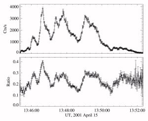 The 2001 April 15 flare observed by Yohkoh occurred at W85. It was associated with one of the largest GLEs seen in Cycle 23. Once again only soft-hard-soft evolution appears to have been observed as can be seen in Figure 4.
